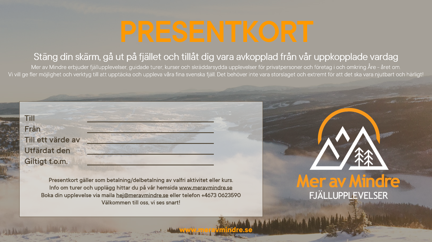 Gör någon glad - Ge bort en oförglömlig upplevelse! Presentkort gäller som betalning/delbetalning av aktivitet eller kurs och håller i ett års tid.